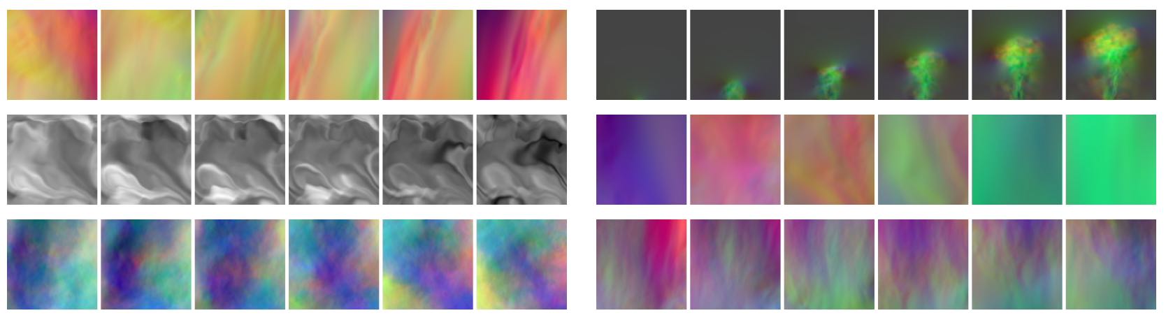 Fig. 1 Some visual examples of numerically simulated time sequences. In this book, we explain how to realize algorithms that use neural networks alongside numerical solvers.#